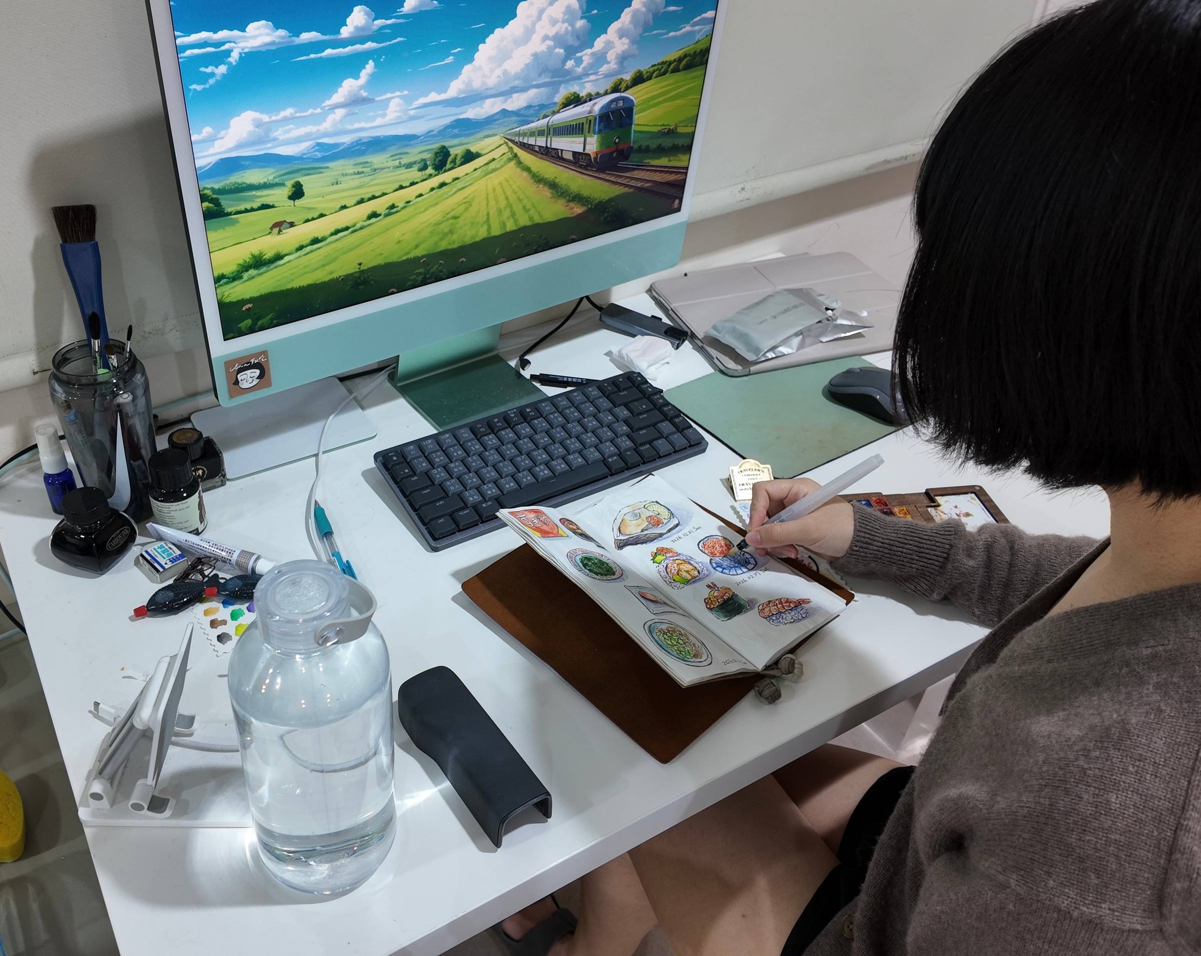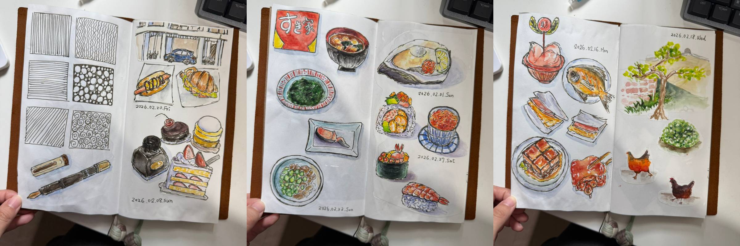 2 月的內容,都是我每天在下班洗完澡到睡前這段時間,撥出一點原本會賴在沙發上滑手機的時間畫出來的。老實說,有時候下班真的蠻累,想到要坐在書桌前畫畫,內心也會掙扎... 但後來又想說,白天已經要上班了,晚上不如就撥點專屬於自己的快樂畫畫時光吧 ! (反正不畫也是在滑手機,不如就先坐下來畫個幾筆吧!) 結果通常是只要一拿起鋼筆,就會立刻進入心流畫滿一頁。畫完後,原本疲憊的內心反而會變得非常滿足、平靜。這大概就是速寫最迷人的地方吧!因為鋼筆不像 iPad 可以一直重來,反而讓我更能專注在「當下」的每一筆。 持續的小努力,都會成為未來的力量持續輸出,真的會帶來很多力量呢。 目前這個鋼筆速寫企劃才來到第 2 個月,每次翻開速寫本時,看著之前那些作品,就會感到好滿足,那些...都是我努力生活的痕跡呢 ! 我想,當多年後的自己再次回顧這些一筆一畫,一定也能從中獲得滿滿的勇氣吧!✨ 最近,有一位上過我電繪班的媽媽也跟我分享,她去買了速寫筆,會抽空跟小孩一起速寫~我也想把這份力量分享給讀到這裡的你。 如果你最近也想找一個取代睡前滑手機的時間,很推薦大家可以嘗試看看速寫喔 ! 也不一定要用鋼筆啦,隨便一隻筆就能開始 ~ 速寫能幫助你暫時拋開對明天工作會議的焦慮、一整天帶小孩卻說不出口的疲憊...速寫是專屬於你自己的療癒時光 🥰 💡 小預告: 最近分享的內容比較多在手繪上,但其實我也練習了不少電繪新畫法! 預計 4 月中,電繪的部分也會有新的教學系列企劃喔!這是我規劃了好久的內容,大家可以先期待一下~