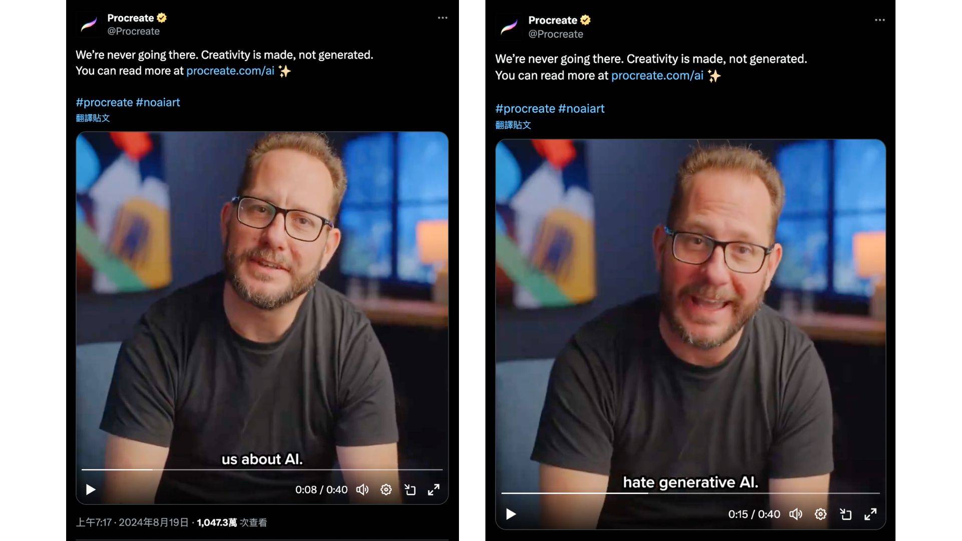 有趣的是,前陣子 Procreate 執行長 James Cuda 在 X 平台上發布的影片中表示:「我們不會在產品中導入任何生成式AI。我不喜歡這個技術對產業、對藝術家的影響...」